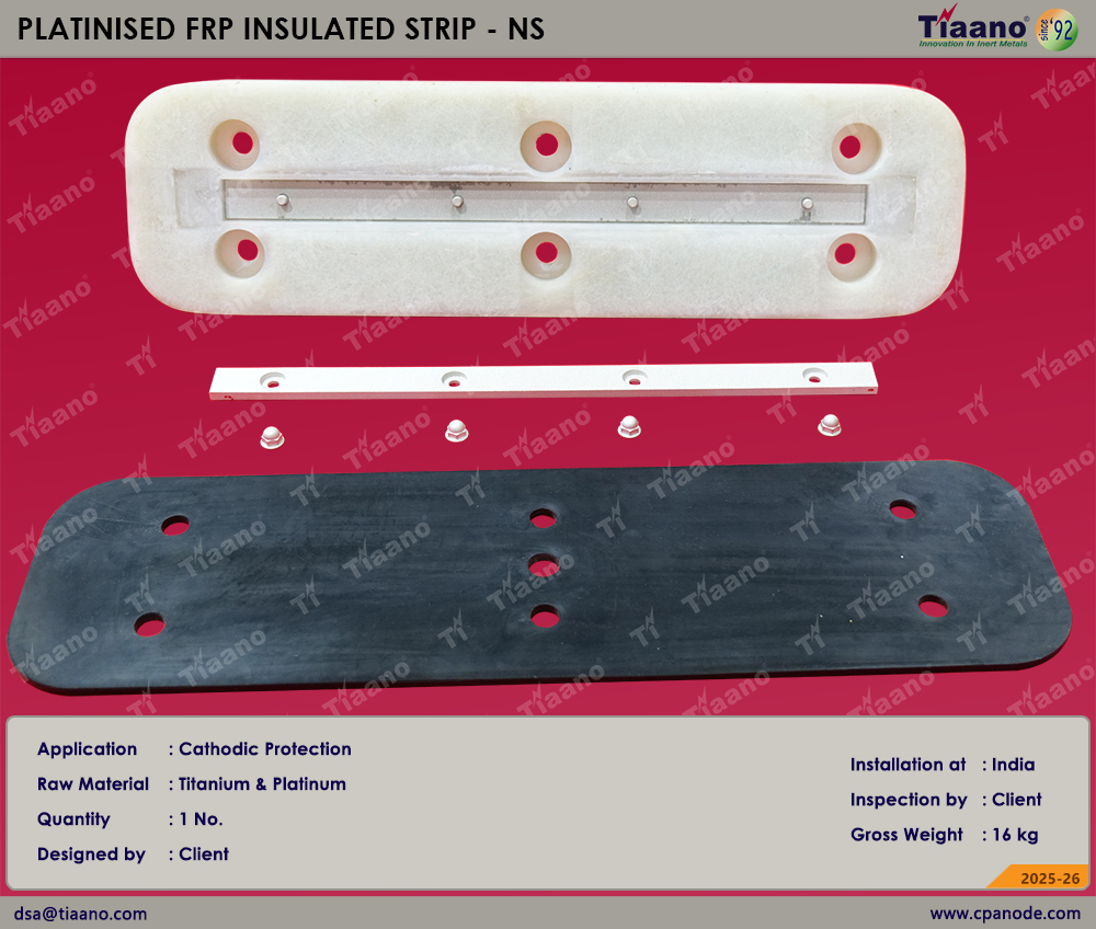 Upgrade your cathodic protection system today with the proven Platinised FRP Insulated Strip – NSmanufactured and supplied by Ti Anode Fabricators Pvt. Ltd. — the experts in platinum-coated titanium anodes.