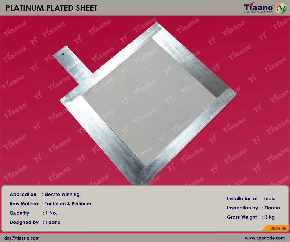 Ti Anode Fabricators Pvt. Ltd. (Tiaano) is a specialized Indian manufacturer renowned for precision fabrication of electrochemical components. Tiaano’s expertise in platinum plating and titanium substrates ensures every Platinum Plated Sheet meets the strict demands of electrochemical industries, delivering consistent performance in Electro Winning applications.